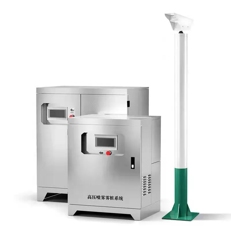 本公司生产的智能室外喷雾降尘系统有单主机配单个喷雾桩喷雾模式,和单主机配多个喷雾桩模式(需定制),占地面积小,该产品具有智能化、多操控方式、抑尘效果好等特点。一般布置在扬尘较为集中的场地,如道路、堆场、料场等边上。本套设备有以下特点: